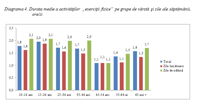 Durata medie a acestor activităţi, calculată doar pentru persoanele implicate, se ridică la 4,1 ore pe zi.